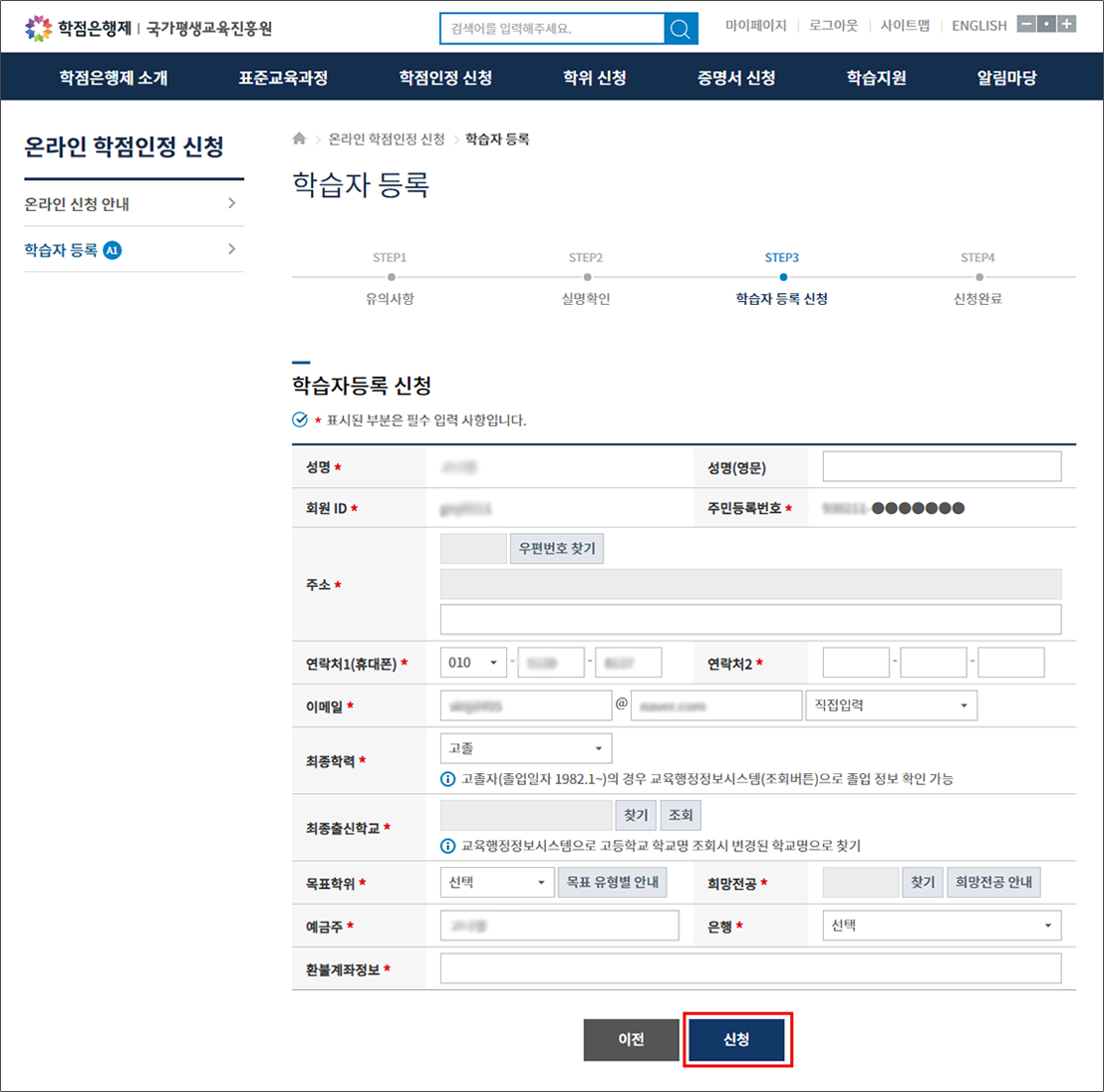 3. ÀÎÁ¤ÇÐÁ¡ È®ÀÎ ¹× ÇÐÀ§½Åû ¼±ÅÃ