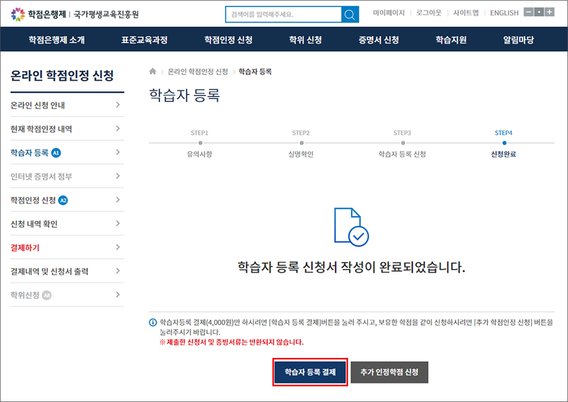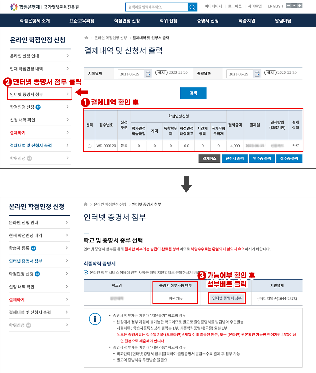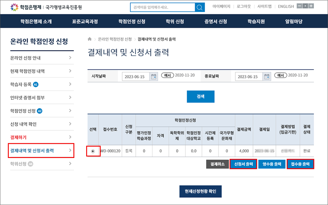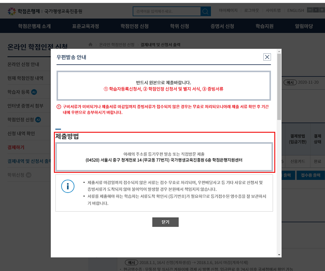 [°áÁ¦³»¿ª ¹× ½Åû¼ Ãâ·Â] Ŭ¸¯ ¡æ ½Åû¼ ¹× Á¢¼öÁõ Ãâ·Â¡Ø Á¦Ãâ¼·ù¸¦ º¸³»Áö ¾ÊÀ¸¸é ÇнÀÀÚµî·ÏÀÌ Ãë¼ÒµË´Ï´Ù. ÃÖÁ¾ÇзÂÁõ¸í¼°¡ ¿Â¶óÀÎÀ¸·Î ÷ºÎµÇÁö ¾ÊÀ¸¸é ¹Ýµå½Ã µî±â ¹ß¼ÛÇÕ´Ï´Ù.